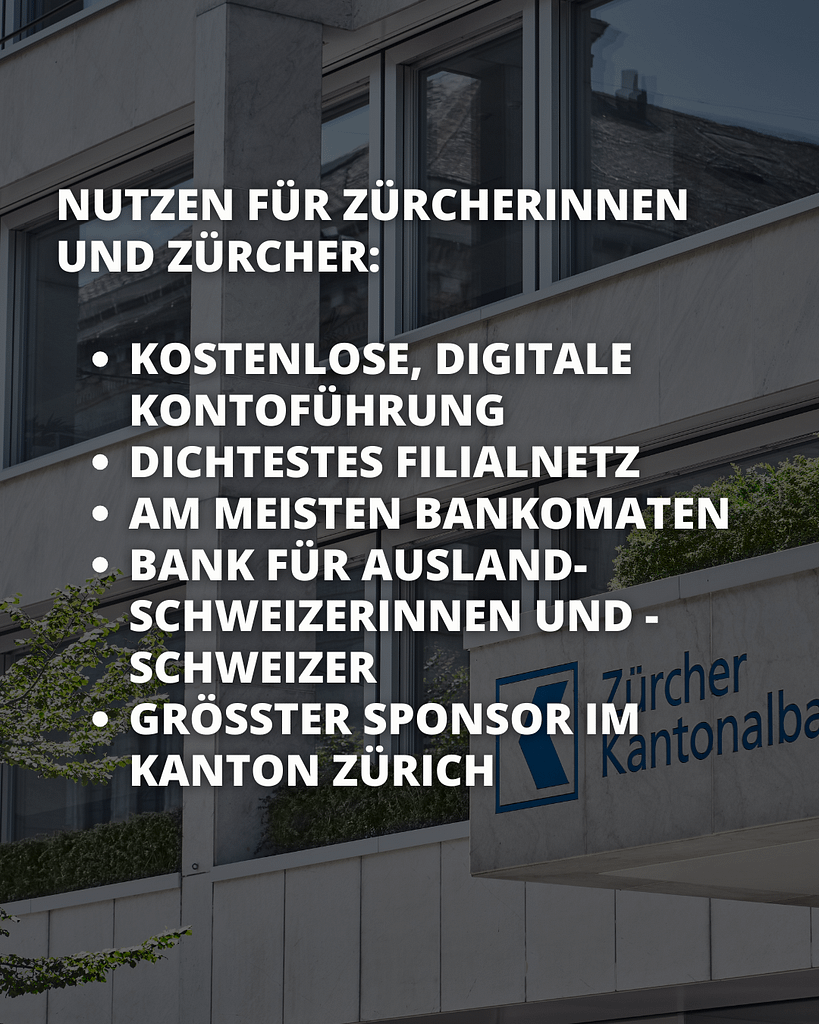 Würdigung Leistungsauftrag: Die ZKB ist für den Kanton mehr als ein Finanzinstitut. Sie pflegt aus unserer Sicht eine gesunde Kultur, die sich mehr an den Bedürfnissen der Kunden als an reinen Rentabilitätsüberlegungen orientiert. Die Bancomatendichte, die kostenlose, digitale Kontoführung oder das Angebot für Auslandschweizerinnen und Auslandschweizer zeigen dies. Als bereits grösster Sponsor des Kantons und Förderer von unternehmerischen Initiativen mit Start-up Hilfen unterstützen wir die aktuellen Bemühungen um eine steuerbefreite Philanthropie-Stiftung. Damit kann eine noch breitere Bevölkerungsschicht vom Leistungsauftrag der ZKB profitieren.